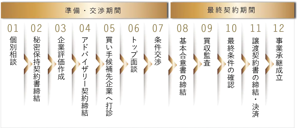 貴社の買収ニーズに基づき、案件のご紹介からご面談、各契約書作成、買収監査からM&A成立までをご支援いたします。
